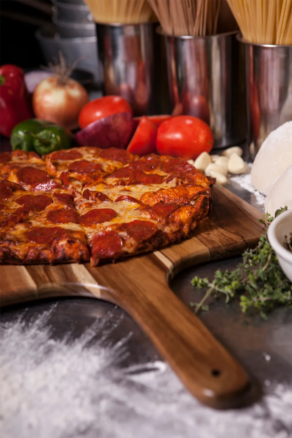 The Acacia Wood Pizza Peel is a pro-grade pizza board with a handle and beveled edge to make it easier to transfer pizzas and bread in & out of the oven (or your fancy wood-fired pizza oven!)