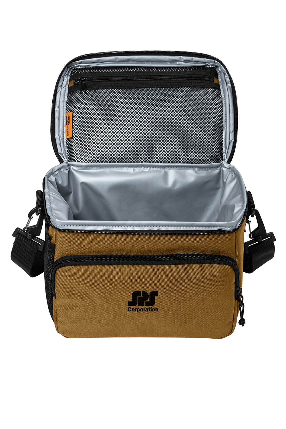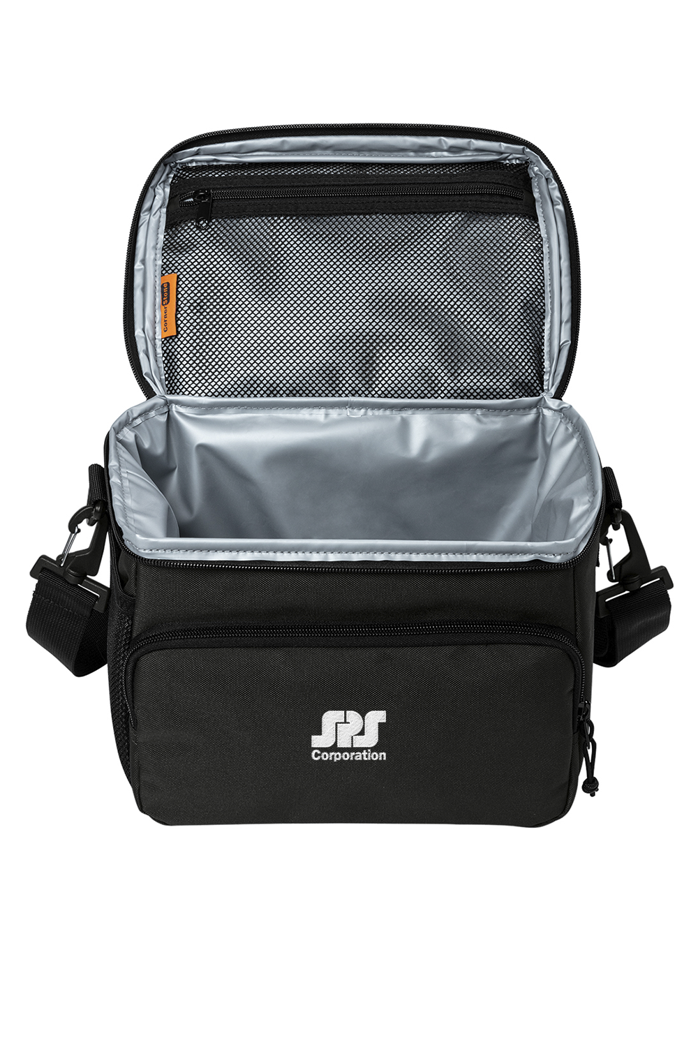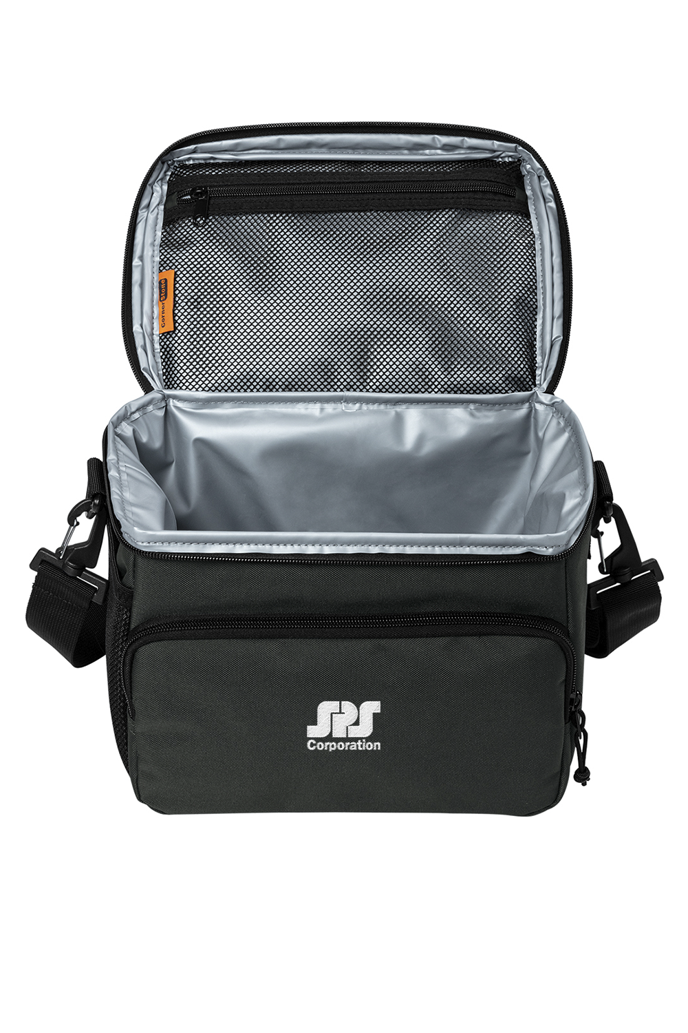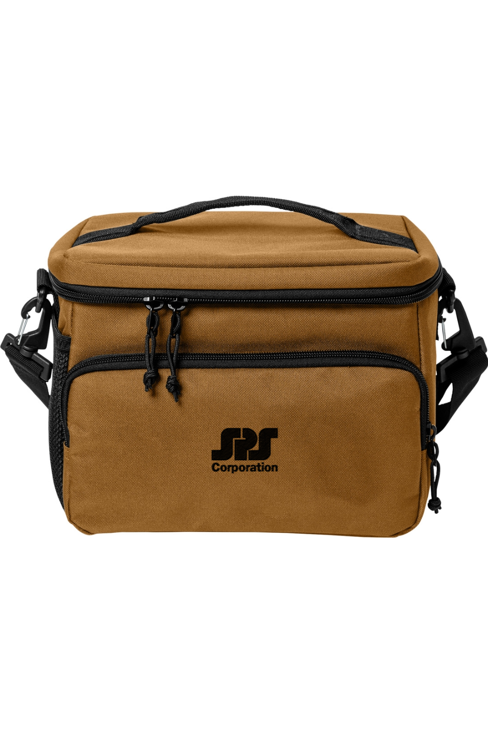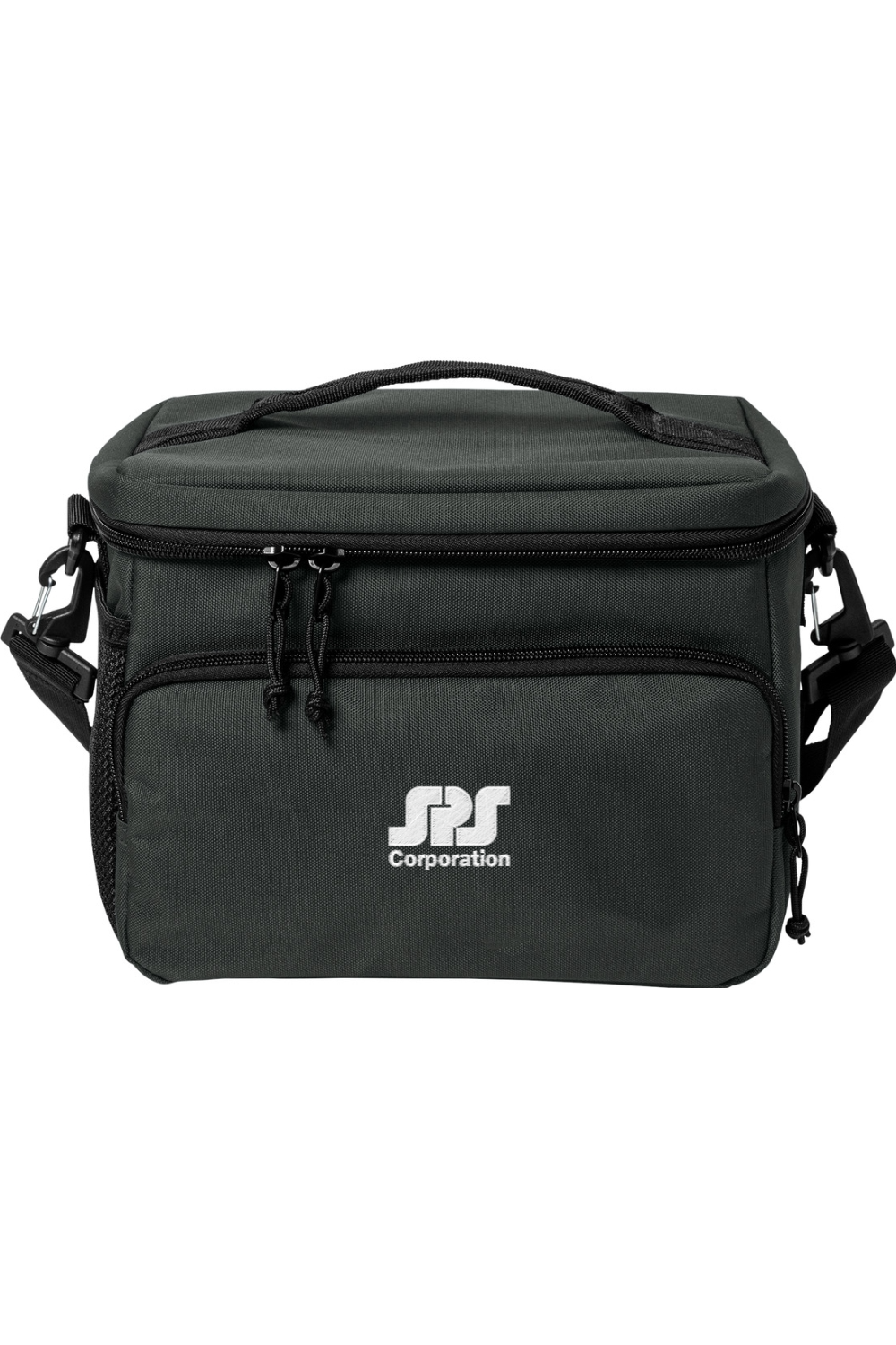 Stay cool and prepared with this durable, high-capacity Can Cooler. Designed to hold 18 cans, it’s perfect for job sites, tailgates, or any adventure. With a heat-sealed, water-resistant PEVA lining, it ensures your drinks stay cold, while the front zippered pocket and interior lid mesh pocket offer extra storage. The adjustable, removable shoulder strap and web carry handle make it easy to carry, and the side mesh pocket adds quick access. Compact yet spacious, this cooler is your ultimate companion for convenience and refreshment. Dimensions: 8.5″h x 10.5″l x 8″d.