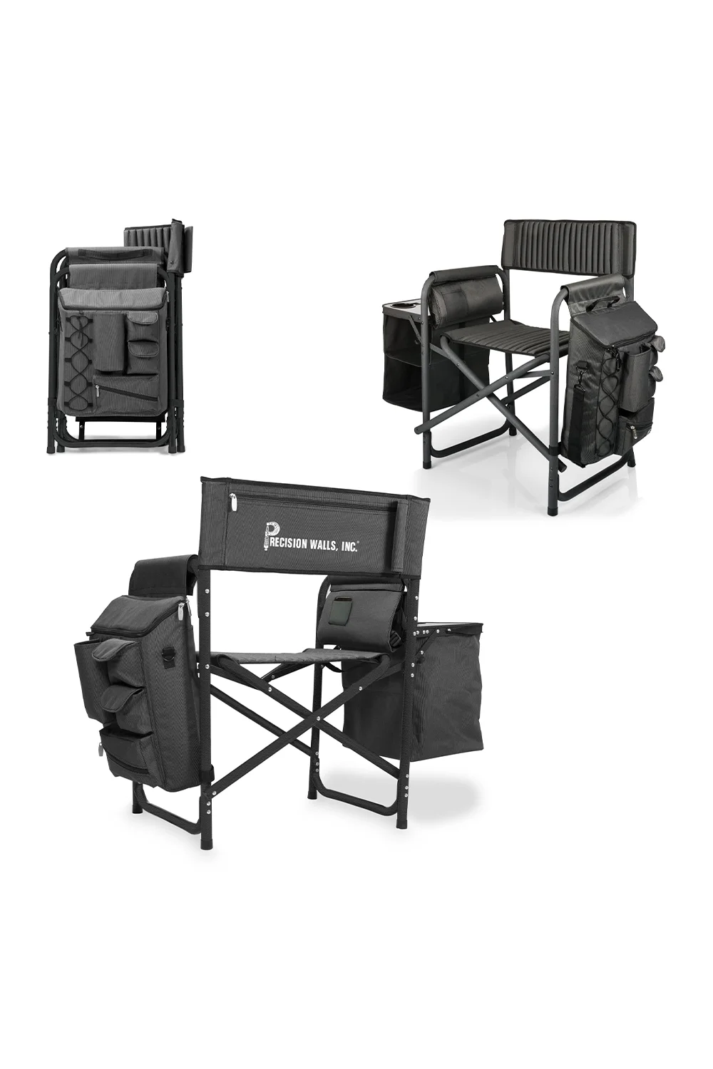 The Fusion Camping Chair is a durable and versatile portable camp chair with a 350 lb. weight capacity, featuring a powder-coated aluminum frame, ribbed padding for comfort, a wide seat, molded cup holders, a folding tray table with expandable shelves, padded backpack straps, and a detachable insulated cooler with storage pockets, making it ideal for both camping and other outdoor activities.