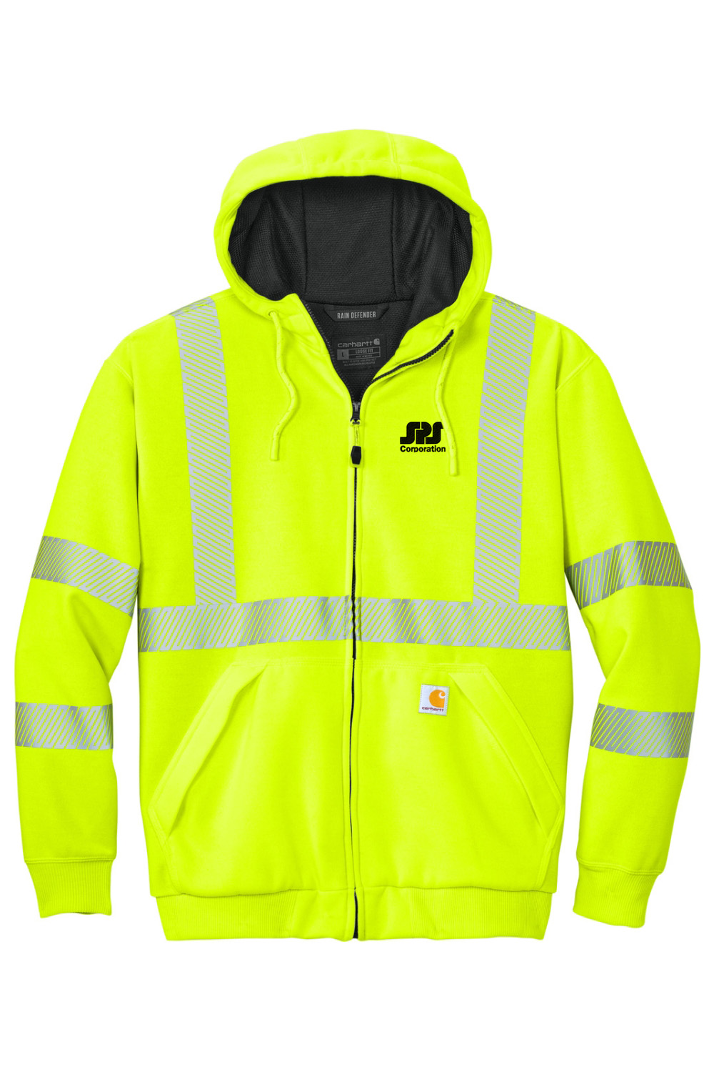 Stay visible and protected on the job with Men’s Carhartt ANSI 107 Class 3 Lined Sweatshirt, built for demanding work environments. This high visibility sweatshirt meets Class 3 safety standards and features reflective detailing to help you stay seen in low light conditions. The durable fabric includes a water repellent finish to help keep you dry, while the thermal lining provides reliable warmth throughout the day. Designed with a comfortable fit, secure pockets, and a full zip front, this sweatshirt delivers trusted Carhartt durability with safety focused performance for the worksite.