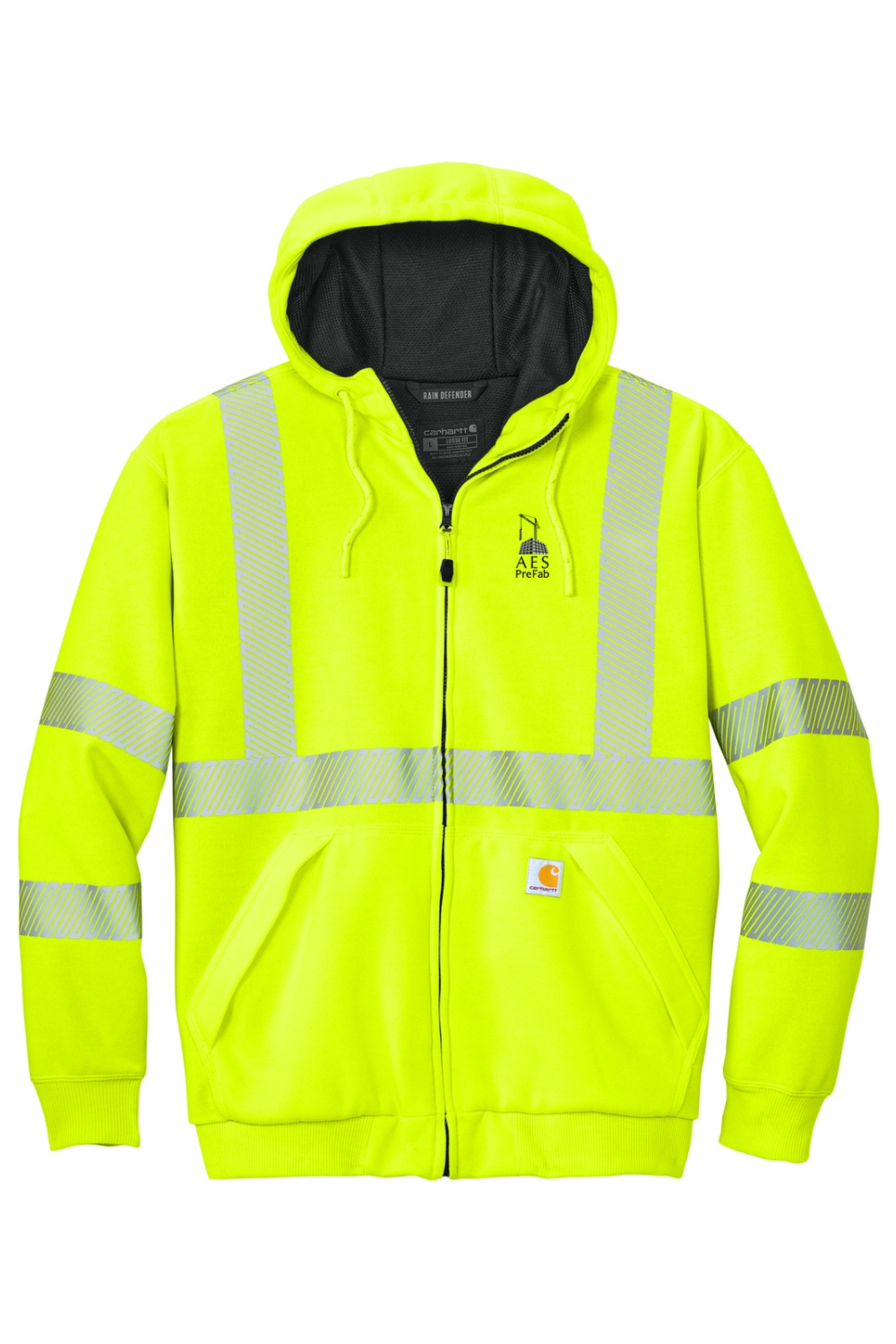 Stay safe, dry, and comfortable with this high-visibility sweatshirt designed for tough work environments. Compliant with ANSI/ISEA 107 Class 3 standards, it offers top-notch visibility with 3M™ Scotchlite™ reflective material, ensuring you stay seen, day or night. Its Rain Defender® technology keeps you dry, while the thermal lining and adjustable hood provide warmth. Built for durability and convenience, it features multiple secure pockets, including a hidden media pocket. With a loose fit and reinforced cuffs, it ensures ease of movement without compromising safety. Stay protected and perform at your best in any weather.