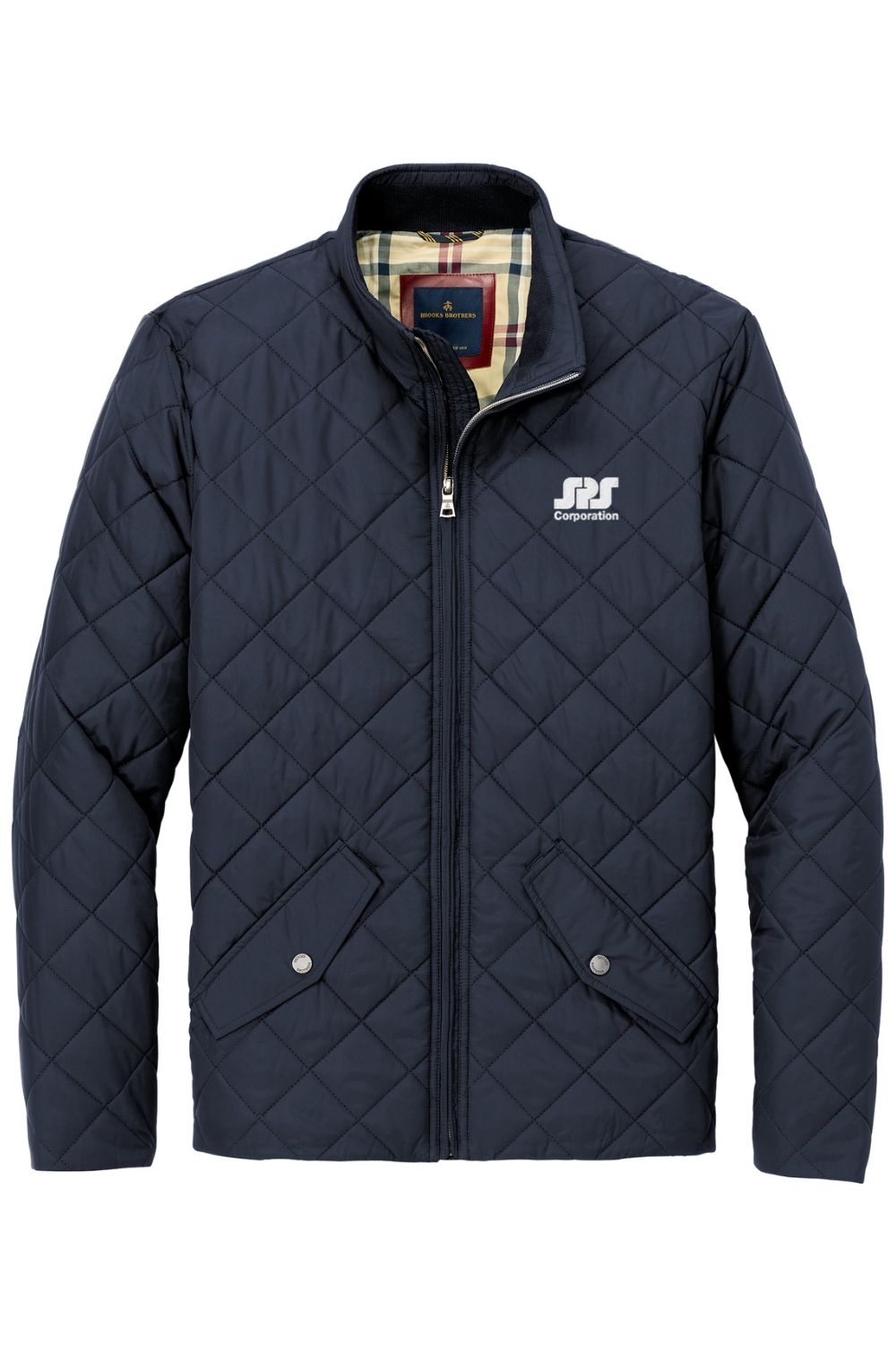 With a supple diamond-quilted shell designed to resist water and provide warmth when you need it, this jacket delivers unbeatable performance and unmistakable style. 100% polyester shell and lining. 2.9-ounce polyfill insulation. Brooks Brothers tie-stripe hanging loop. Metallion coil front zipper with metal Brooks Brothers Golden Fleece logo zipper pull and piped kissing welt. Rib knit lined collar. Hand pockets secured with flaps and Brooks Brothers logo snaps. Interior zippered chest pocket. Brooks Brothers tartan plaid on interior yoke and inside hand pockets. Faux leather label patch. Embroidery access pocket.