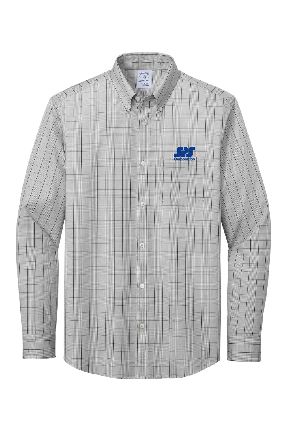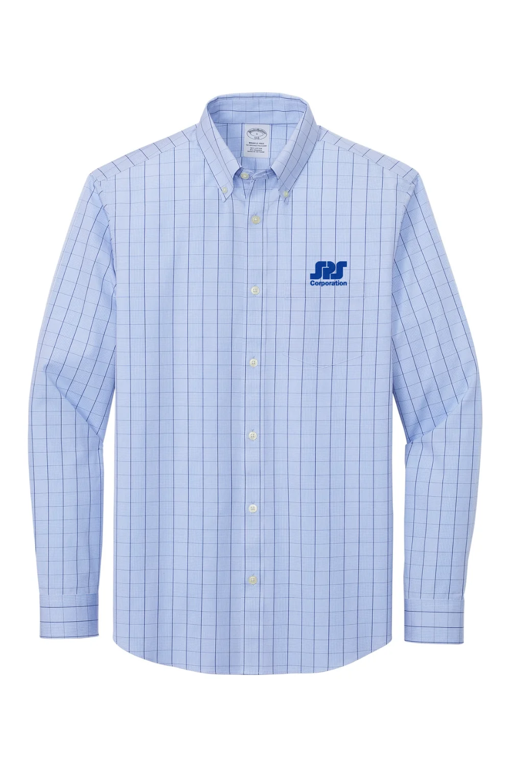 Make a statement with this classic woven shirt, featuring a subtle glen plaid pattern and a comfortable, wrinkle-free fit. Crafted from 4.4-ounce 96/4 cotton/spandex, it includes a button-down collar, left chest pocket, taped seams, pearlized buttons, and rounded adjustable cuffs.