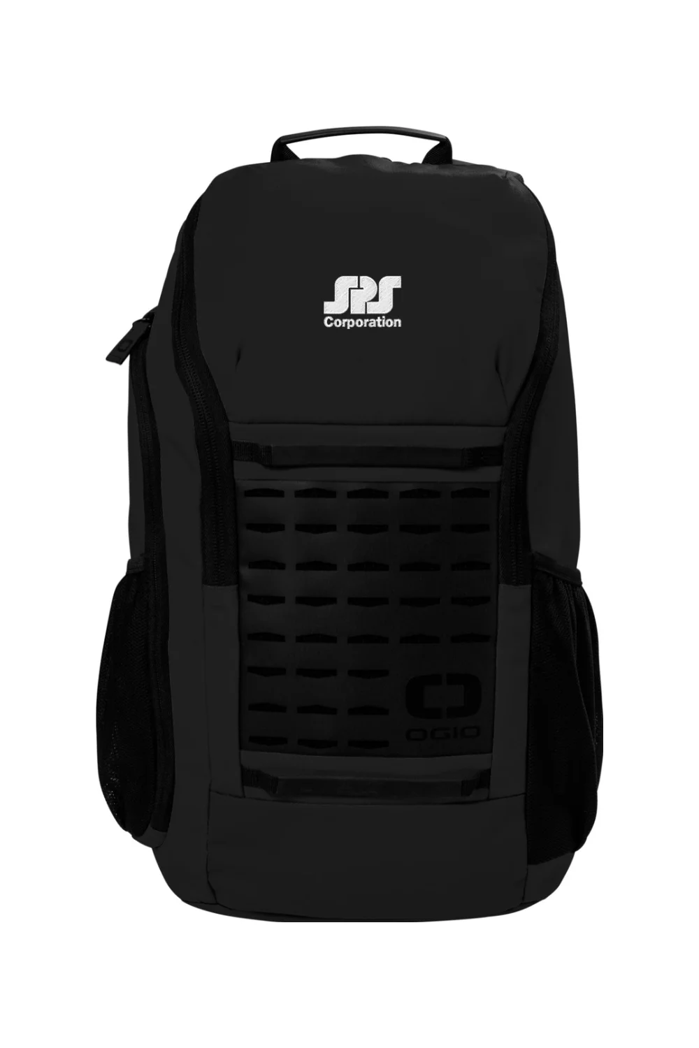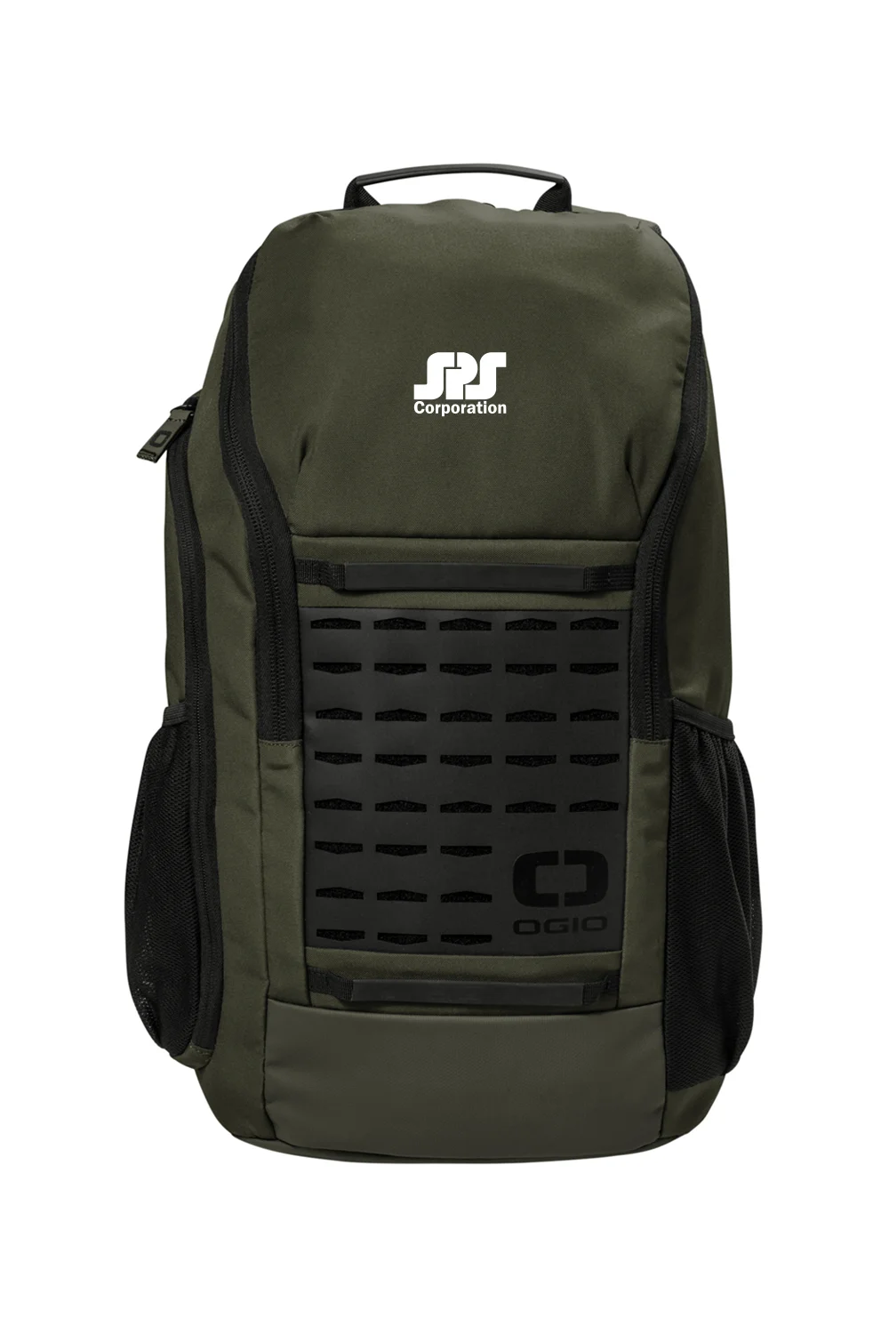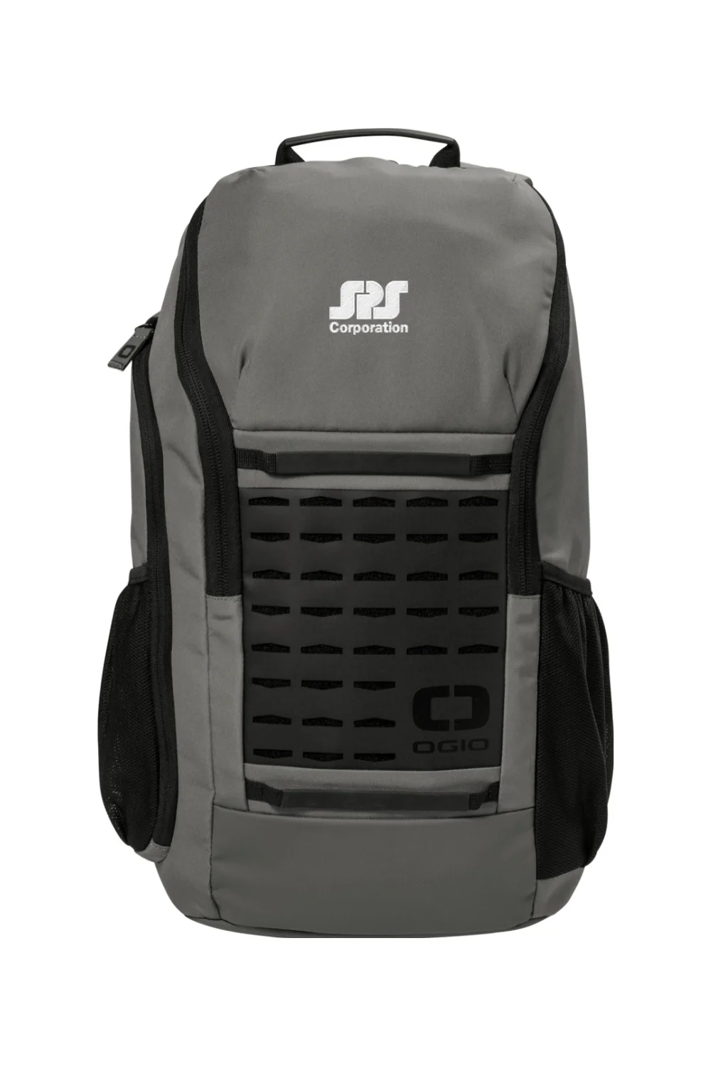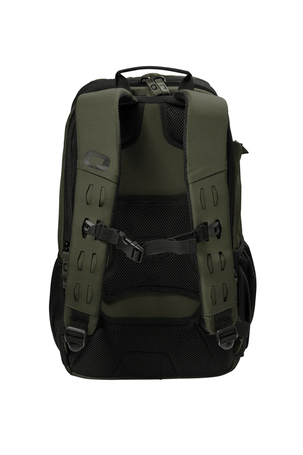 The OGIO Surplus Pack, made from 500D poly, features a laser-cut front panel for attaching small items, a spacious main compartment, padded laptop/tablet sleeve, fleece-lined valuables pocket, ergonomic shoulder straps, side pockets, and a luggage trolley pass-through, all in a 19.2″ x 10.9″ design with a 22L capacity.