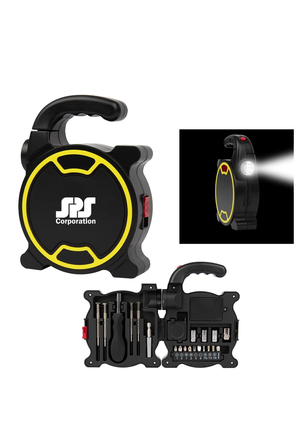 This versatile tool kit includes 8MM, 7MM, 9MM, and 10MM hex sockets; slot and Phillips screwdrivers; PH1 and PH2 Phillips heads; PZ1 and PZ2 meter heads; CR-V5 and CR-V6 one-word heads; T10, T15, and T20 plum flower heads; screw bits; a hexagonal tool; and a ruler. Equipped with an extra bright LED light, a flashing emergency light on the side, and an easy carrying handle, this kit ensures you’re ready for any task, day or night.