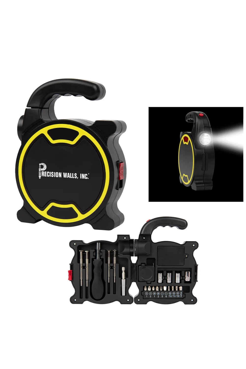 This versatile tool kit includes 8MM, 7MM, 9MM, and 10MM hex sockets; slot and Phillips screwdrivers; PH1 and PH2 Phillips heads; PZ1 and PZ2 meter heads; CR-V5 and CR-V6 one-word heads; T10, T15, and T20 plum flower heads; screw bits; a hexagonal tool; and a ruler. Equipped with an extra bright LED light, a flashing emergency light on the side, and an easy carrying handle, this kit ensures you’re ready for any task, day or night.