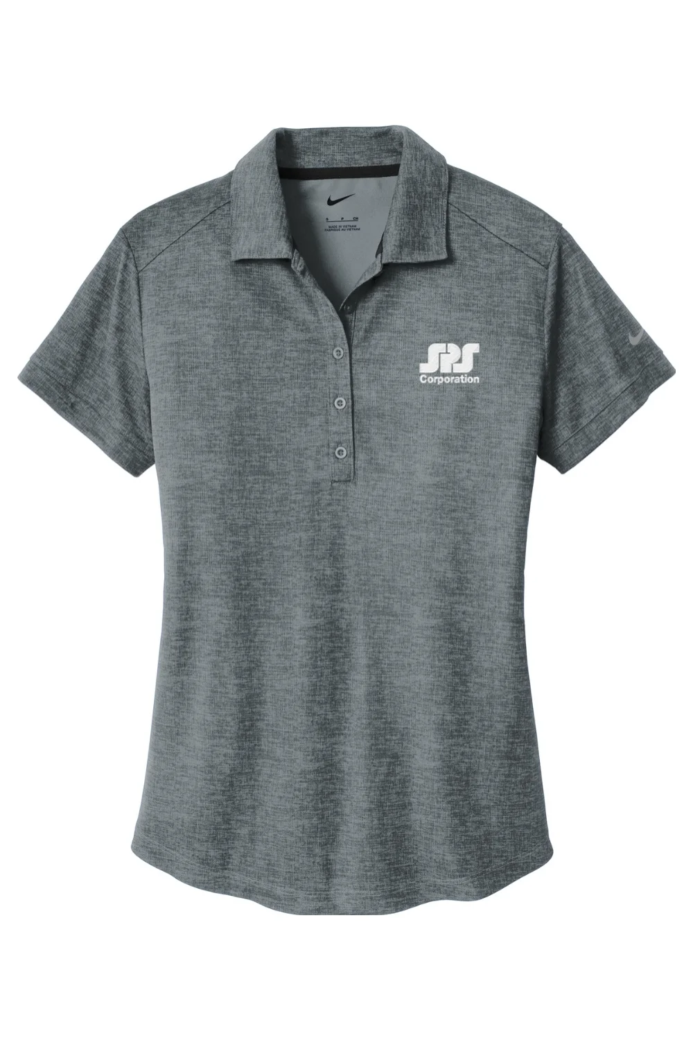 The allover crosshatch print adds a technical look to this polo, while the Dri-FIT fabrication delivers performance and ensures breathable comfort. Tailored for a feminine fit. Design details include a self-fabric collar, five-button placket and open hem sleeves. A contrast heat transfer Swoosh design trademark is on the left sleeve. Made of 5.29-ounce, 100% polyester Dri-FIT fabric.
