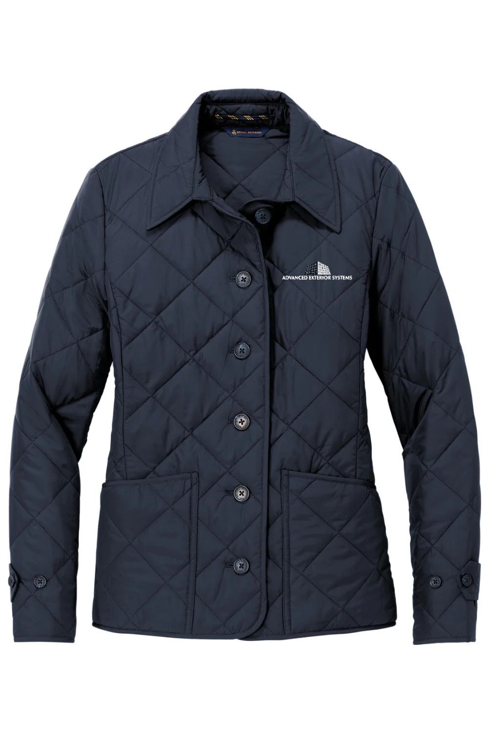 With a flattering, low-profile fit and a refined look, this supple diamond-quilted jacket is designed to resist water and provide warmth when you need it.. 100% polyester shell and lining. 2.9-ounce polyfill insulation. Brooks Brothers tie-stripe hanging loop. Faux horn Brooks Brothers logo buttons. Front patch pockets. Adjustable tabs at cuff. Brooks Brothers tartan plaid-bound interior seams and lined front pockets. Interior patch pocket with faux horn Brooks Brothers logo button closure.