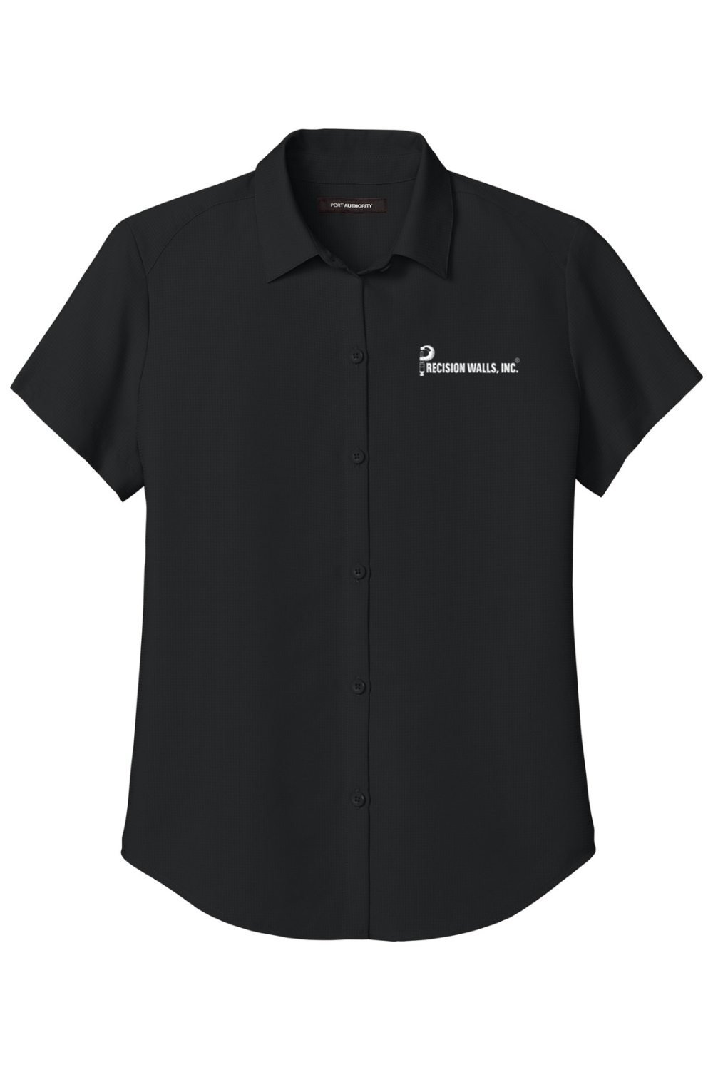 A breathable, quick-drying camp-style shirt with UPF 30+ sun protection and moisture-wicking performance. Designed with an open collar, French placket, curved forward shoulders, and a flattering curved hem—perfect for warm-weather workdays or outdoor events.