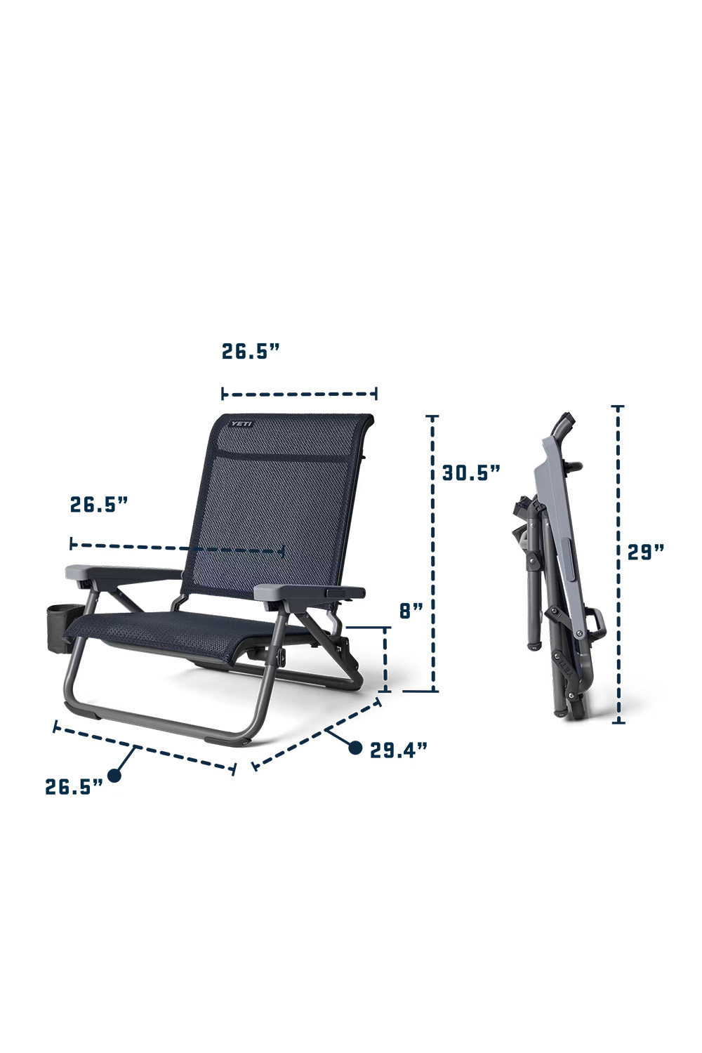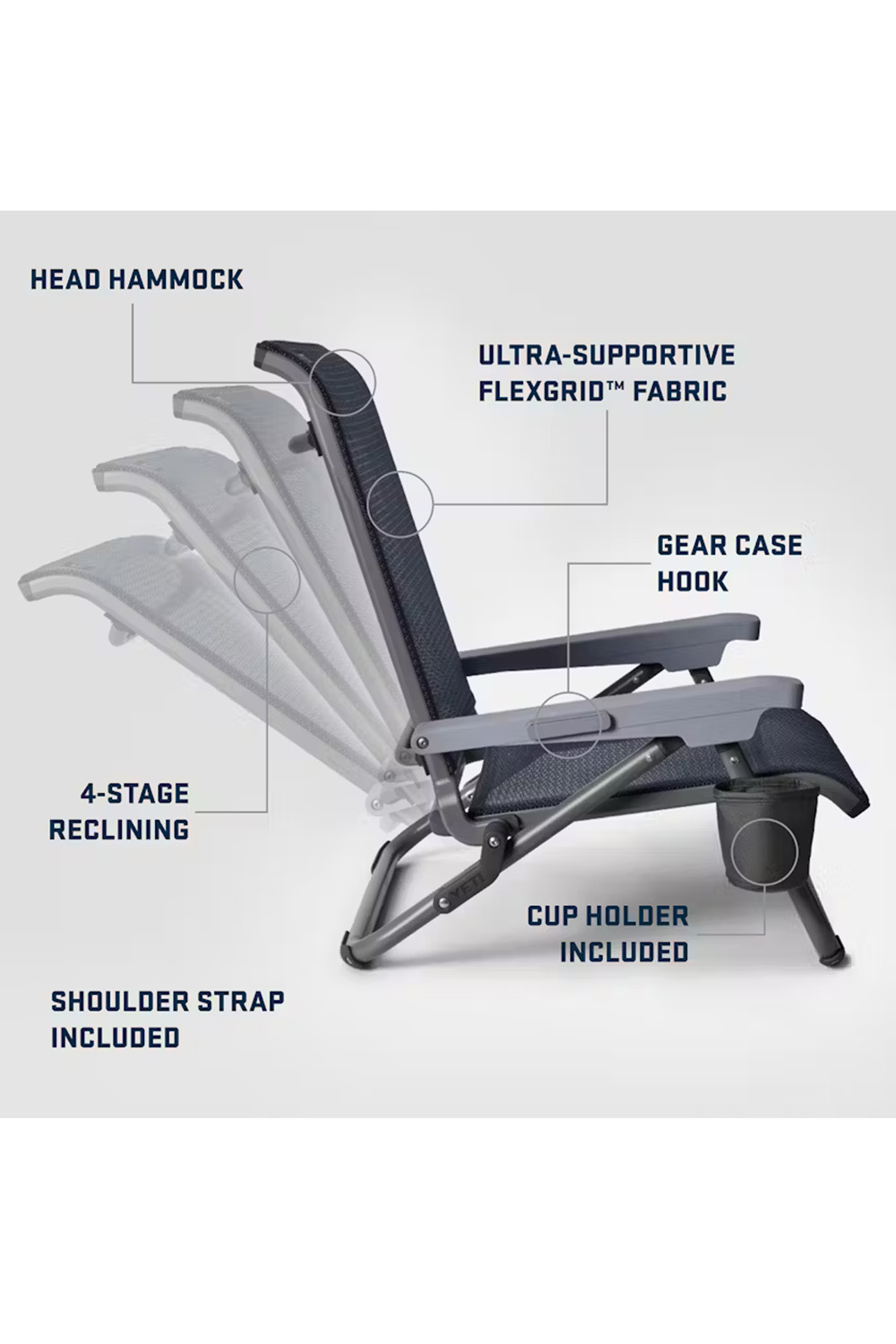 Wherever you go to unwind, the HONDO® YETI Beach Chair is built to bring comfort with you. Its ultra-durable, breathable mesh resists UV damage and holds up to 350 lbs without stretching out or sagging. The lightweight frame folds out in seconds and packs down flat for effortless transport. With multiple reclining positions and a waterfall headrest designed for serious relaxation, this chair isn’t just made for the beach — it’s made for kicking back in comfort, anywhere adventure takes you. This chair features only the original YETI branding with no additional decoration.