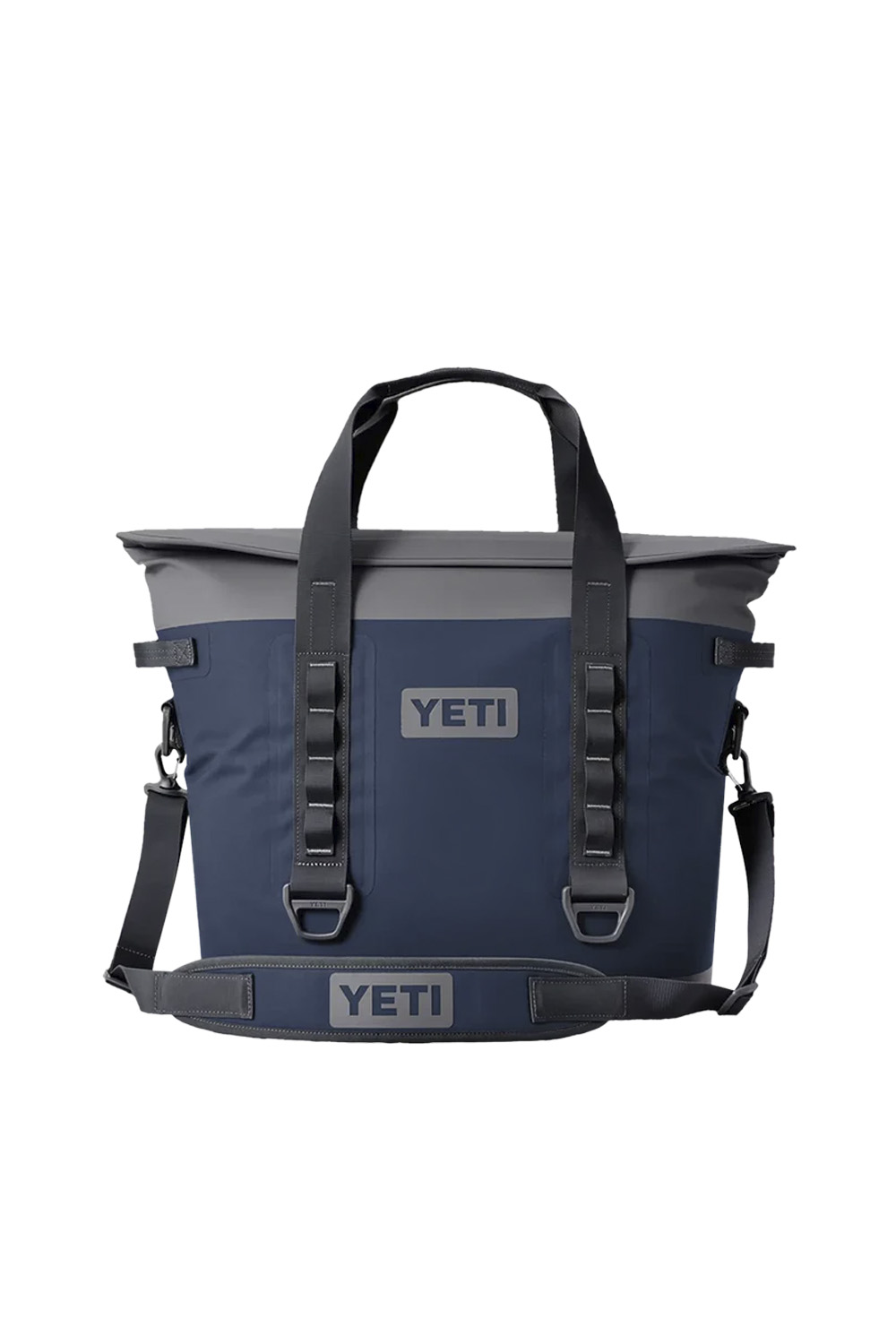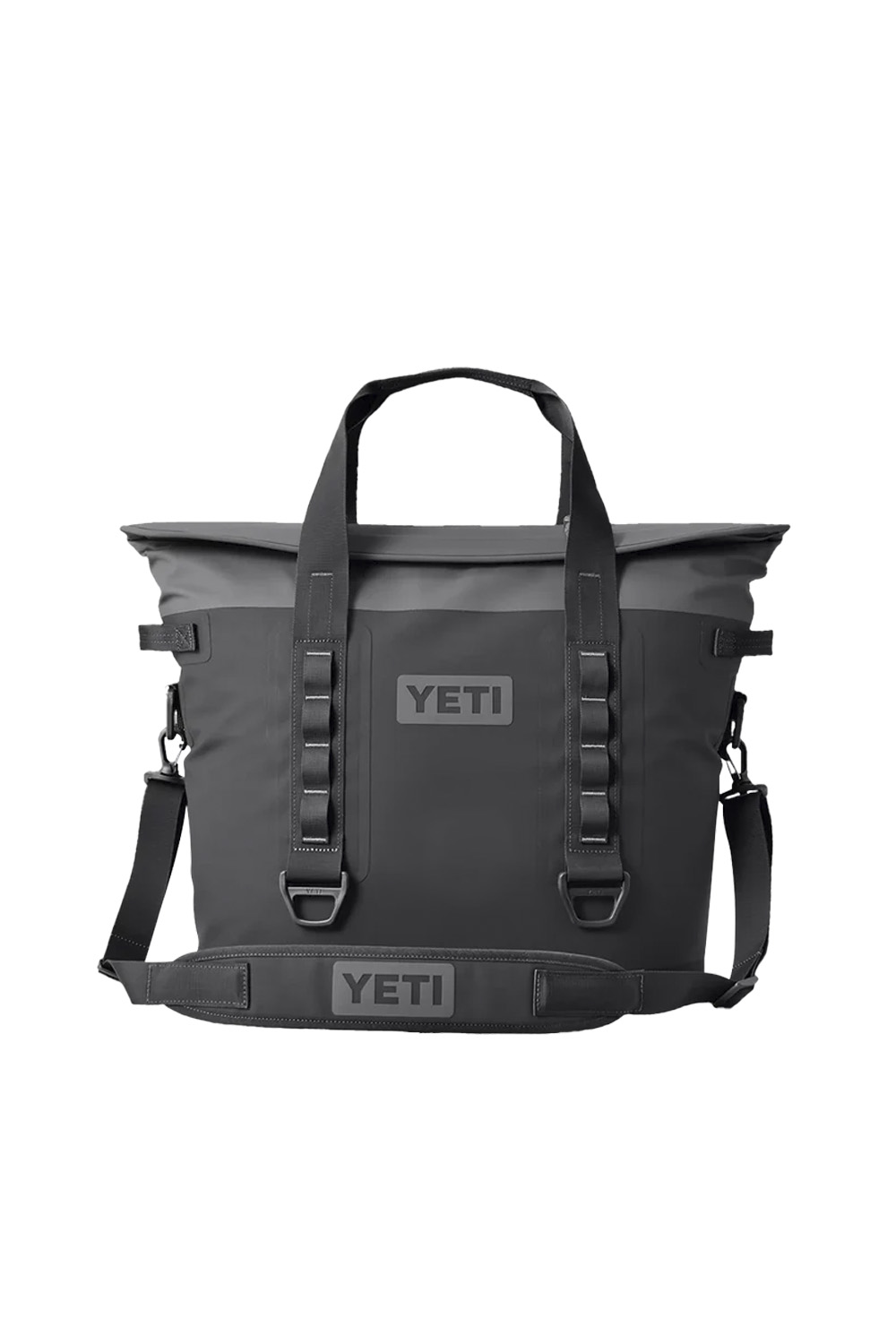 The YETI Hopper M30 Soft Cooler is the perfect refreshment hauler for any day trip or weekend get together. Constructed with high-density fabric, the interior and exterior are puncture and UV ray resistant. The magshield opening uses powerful magnets to create a leak-resistant shield that creates an extra-wide mouth opening and is easily closed with a gentle push. Keep your personal belongings safe in the deep front pocket and hitch on your important gear to the front grid loops. The closed-cell foam insulation will keep all of your drinks and snacks ice cold for hours and the leakproof welded liner prevents any water from soaking your pack. Comfortably carry your soft cooler with the reinforced double-stiched handles and ergonomic crossbody strap that evenly distributes the weight.